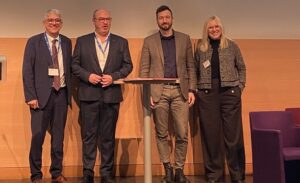 Roland Dysli, Alain Vinciarelli, Julien Blot et Céline Jamet-Mons, respectivement président(e)s de l’Aire, de l’Anmecs, du Gepso et du Cnaemo.